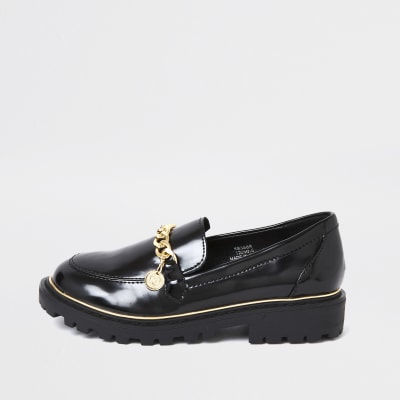 Girls black chunky chain loafer | River