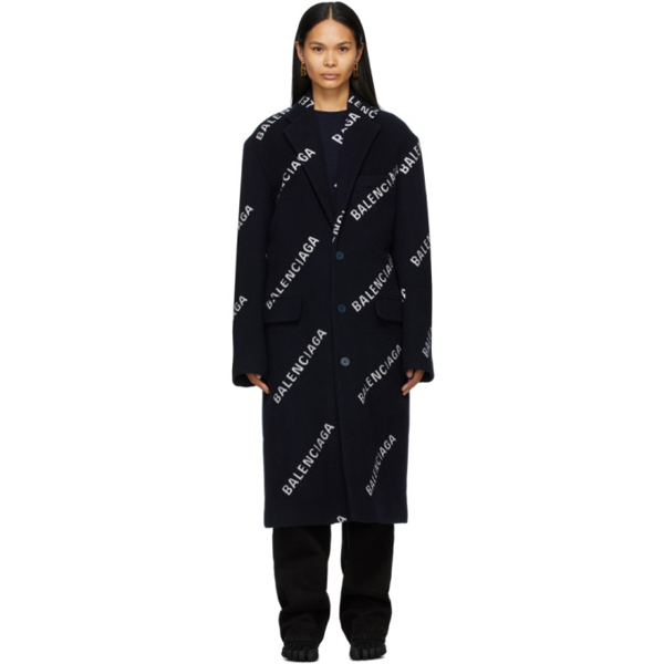 Balenciaga all-over Logo A-line Coat