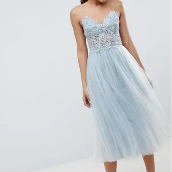 Nwt Asos Tulle Baby Blue Crochet Midi