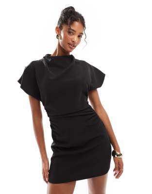 ASOS – Neopren-Kleid mit One-Shoulder-Träger und Schößchen in mittlerer Länge