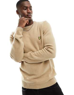 Lyle \u0026 Scott – Strickpullover aus Lammwollmischung in meliertem Rauchquarz-Khaki-Beige mit Markenlogo